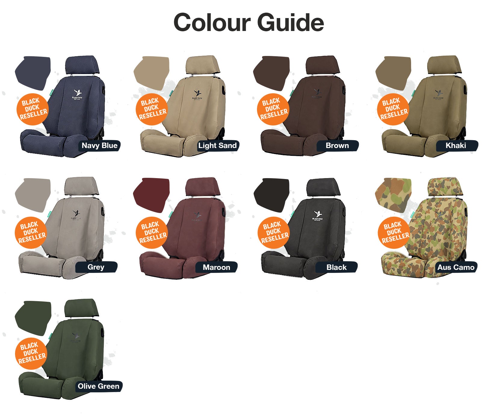 Black Duck Seat Covers come in a range of colours so you can match your vehicle or add a bit of personality. Whether you like classic black and grey or want something that stands out, there is an option to suit you.